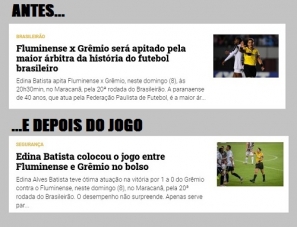 A vitória do Grêmio sobre o Fluminense, por 1 a 0, neste domingo, no Maracanã, teve uma personagem da região. A árbitra foi Edna Alves, de Goioerê. E olha como o colunista Diori Vasconcelos, do jornal Zero Hora (Porto Alegre) e da rádio Gaúcha, se referiu a ela. Tanto antes, como depois da partida, só elogios. Cá pra nós: "maior da história" não é pra qualquer um...