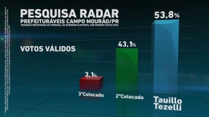 O candidato à reeleição Tauillo Tezellli divulgou nesta quarta-feira, em rede social, o resultado de pesquisa eleitoral em Campo Mourão.