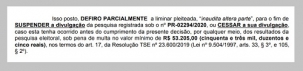 Saiu mais uma liminar suspendendo a divulgação de pesquisa eleitoral em Campo Mourão.
