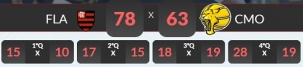 Campo Mourão fez um jogo equilibrado com o Flamengo, nesta sexta-feira, em Mogi das Cruzes/SP, pelo NBB. Até venceu o terceiro quarto (19 a 18) e chegou aos quarto final apenas seis pontos atrás. Só que aí os cariocas abriram mais nove e fecharam o jogo 15 pontos à frente - 78 a 63. Campo Mourão fará agora três jogos no ginásio do Morumbi, o primeiro dia 3, contra o São Paulo.
