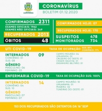 Foram confirmados sete casos de covid-19 nesta terça-feira em Campo Mourão. Os recuperado foram 170, sendo 153 presos da cadeia local. Com isso, o número de moradores com o vírus ativo caiu bastante e ficou em 250. A UTI está com 89% de ocupação e a enfermaria com 100%.