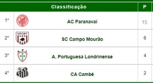 Sport e Cambé ficaram no 0 a 0 nesta quarta-feira pelo terceirona do Paranaense. O jogo foi em Rolândia, que virou a "casa" do Leão do Vale. Se tivesse vencido, o time de Campo Mourão/Mamborê tinha garantido a classificação. Domingo (15h30), pela última rodada, "recebe" o já classificado e 100% Paranavaí. O Sport só depende de si para ir à semifinal. Mesmo que perca, basta que a Lusinha não vença o Cambé.