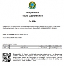 Agora circula pelas redes sociais uma certidão do TSE informando que ele ainda está filiado ao PROS.