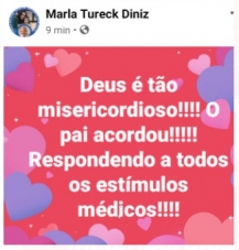 "Acordou reagindo bem aos estímulos médicos, sem sedação, sem dor", informou a filha.