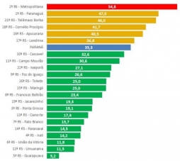 A Região Metropolitana de Curitiba lidera com 54,8 por 100 mil.