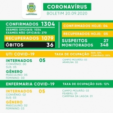 Internações - A ala covid da Santa Casa está com 10 pacientes internados - cinco na enfermaria e cinco na UTI. Entre os leitos do SUS, a taxa de ocupação é de 33% na unidade de terapia intensiva e de 12% na enfermaria.
