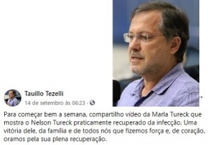 Tauillo Tezelli (Cidadania), prefeito de Campo Mourão, ao compartilhar postagem da família Tureck que mostra o ex-prefeito Nelson Tureck "praticamente recuperado da infecção", no Facebook.