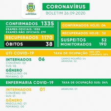 Sábado de quatro casos de covid-19 confirmados em Campo Mourão e mais 32 recuperados. Com isso, teve queda significativa no número de mourãoenses com o vírus ativo. Eram 154 e pasaaram a ser 127.