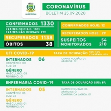 O boletim covid divulgado pela prefeitura nesta sexta-feira traz mais uma morte, a 38ª em Campo Mourão.
