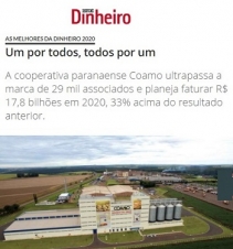 Saiu a edição "As Melhores da Dinheiro 2020", o anuário da revista Isto É Dinheiro que traz as mil maiores empresas do País. A publicação destaca as campeãs em 22 setores. Adivinhe quem venceu (de novo) entre as cooperativas agrícolas? Três dicas: começa com C, tem cinco letras e fica sediada em Campo Mourão...