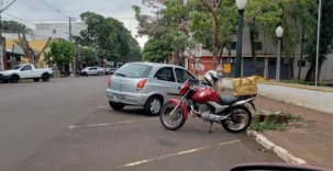 Moto ocupando vaga de carro, em frente a prefeitura de Campo Mourão.