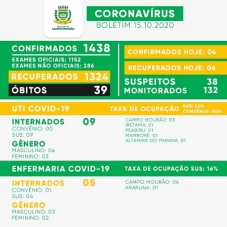 Regional - Além de Campo Mourão, cinco cidades da região confirmaram mais nove casos de covid - Fênix 2, Goioerê 1, Iretama 1, Peabiru 1 e Ubiratã 4. O total foi a 4.093, com 114 óbitos.