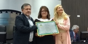 Presenças - A homenagem partiu da vereadora Nelita Piacentini, que entregou o título junto com o prefeito Tauillo Tezelli. Outros sete vereadores e o deputado federal Rubens Bueno prestigiaram o evento.