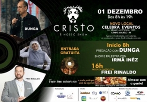1) É neste domingo, no Celebra, o 17.o Cristo É Nosso Show. Começa às 8h, com pregação do cantor Dunga. A programação inclui a Irmã Inês e missa da saúde com o frei Rinaldo. A entrada é franca.