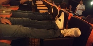 Que tal assistir um filme no cinema em poltrona reclinável e pernas esticadas sobre pufes?