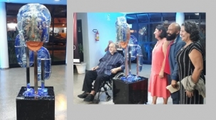 A artista plástica Semeire Vecchi inaugurou nesta quarta-feira sua nova escultura. Foi no Teatro Municipal de Campo Mourão, onde a peça de vidro e argila ficará exposta permanentemente. Batizada de III Ato, a escultura foi aprovada pela Lei de Incentivo à Cultura.
