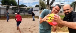 Reconheceu a dupla que jogou vôlei de areia no fim de semana? Sim, é o vereador Jadir Pepita e o padre Nilson Reis. Foi durante a inauguração da quadra de vôlei de areia e da academia da terceira idade na Vila Cândida, em Campo Mourão. As melhorias saíram após indicação de Pepita. O padre cedeu o espaço. O prefeito Tauillo Tezelli e os vereadores Edoel Rocha, Edson Battilani e Sidnei Jardim também estiveram no local.