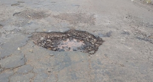 Buraco enorme na entrada da rua João Vecchi, esquina com a av. Miguel Luiz Pereira, no Lar Paraná.
