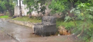 Sofá velho deixado em calçada na rua Colmeia, no jardim Alvorada. Apareceu um dia de madrugada e está há meses no local.