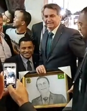 O presidente Jair Bolsonaro fez live nesta quinta-feira, no Facebook, em que mostra encontro com Magnum Alves, o "recepcionista oficial" de Campo Mourão. Foi em Brasília. Magnum se apresenta como amigo do deputado federal Sargento Fahur. "Então é meu amigo", respondeu Bolsonaro. Em seguida Magnum entregou um desenho do presidente. "Você que fez isso daqui?", perguntou Bolsonaro. "Eu que faço", respondeu o mourãonese.