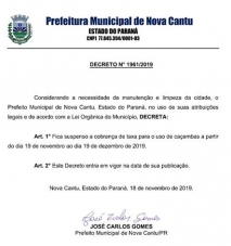 Até 19 de dezembro os moradores de Nova Cantu estão isentos de pagar a taxa pelo uso de caçamba.