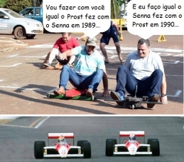 Lembra da corrida de carrinhos de rolimã em Mamborê, que teve até uma prova entre vereadores? Na hora da largada, os vereadores Maurício Jotta Massano e Everson Clei Tibúrcio fizeram lembrar os tempos de Ayrton Senna e Alain Prost na Fórmula-1. A disputa era tão acirrada que houve dois campeonatos decididos na base do "chega pra lá"...