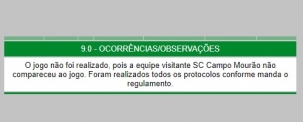 O árbitro registou na súmula vitória do time da casa por WO (3 a 0).