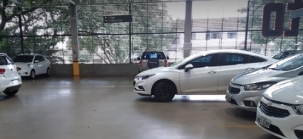 Veículo estacionado (muito) "fora do lugar" em estacionamento de supermercado de Campo Mourão.