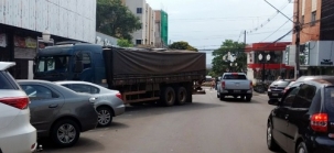 "Em plena terça-feira (com cara de segunda pós-feriado), às 14h, o caminhão fazendo descarga na obra e bloqueando uma das pistas da rua Harrison José Borges, em Campo Mourão. Coitado do trânsito que teve que fazer malabarismo e andar na contra-mão por alguns longos minutos".