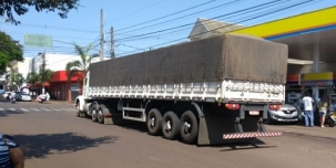Carreta passa pela av. Capitão Índio Bandeira, no centro de Campo Mourão.