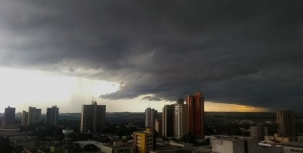 Vista de Campo Mourão, às 11h30 desta segunda-feira. Segundo o Climatempo, vai chover 15 milímetros durante o dia na cidade, com pancadas à tarde e à noite. Na terça-feira a previsão cai para 10 mm, também para a tarde e à noite. A temperatura varia de 18 a 33 graus na segunda e de 22 a 36 na terça.