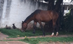 Cavalo pasta em calçada da rua Porto Alegre, na Vila Rio Grande, Foi nesta segunda-feira pela manhã.
