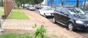 Carro estacionnado em frente ao portão de entrada do Lions Clube de Campo Mourão, na av. João Bento. Foto: Mateus Cordeiro