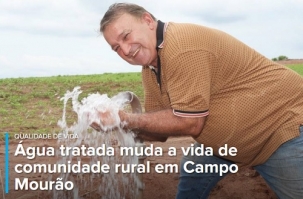 A chegada da água tratatada na comunidade do Alto do Divino, na divisa de Campo Mourão e Araruna, foi destaque nesta terça-feira na Agência Estadual de Notícias. Pudera. Os mais de 100 moradores ainda eram obrigados a recorrer a minas. O investimento foi de R$ 130,8 mil - R$ 89,9 mil da Sanepar e R$ 40,9 mil da prefeitura. A própria comunidade comprou uma bomba e a Sanepar fornecerá outra reserva.
