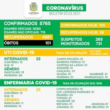 Campo Mourão bateu mais um recorde de novos casos de covid-19. Foram 100 nesta sexta-feira. E houve mais uma morte, a de número 101 (homem de 39 anos). Na ala covid da Santa Casa, a superlotação na UTI só aumentou: foi a 108% no SUS e a 166% nos convênios.