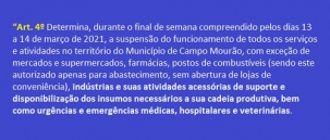 A prefeitura de Campo Mourão deu uma amenizada no lockdown previsto para sábado e domingo.