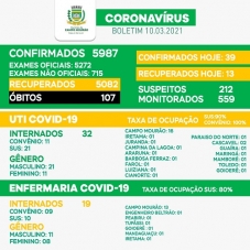 Campo Mourão está com 798 moradores com o coronavírus ativo. É o que aponta o boletim desta quarta-feira, com mais 39 casos confirmados de covid-19. Houve mais um óbito na UPA de paciente que aguardava vaga em hospital. Na UTI Covid 32 pessoas estão internadas, 16 de Campo Mourão. Já estão incluídos os cinco leitos na Central Hospitalar.