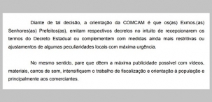 Essa foi a recomendação dada neste sábado pela Comcam.