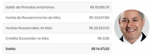 Saiu o relatório de despesas de março dos gabinetes dos deputados estaduais. De Campo Mourão, Douglas Fabrício não usou tudo o que tinha direito, não. Foi ressarcido em R$ 29,2 mil dos R$ 33 mil do que podia usar. Como já tinha R$ 10,6 mil de sobras de meses anteriores, manteve no caixa R$ 14,4 mil.