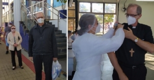 Domingo foi dia de vacinação contra covid-19 de moradores de Campo Mourão a partir de 61 anos. E olha só quem apareceu na Casa da CulTura para receber a primeira dose. Sim, o bispo d. Bruno Versari. Ele encarou mais de uma hora na fila e levou doação para a campanha "Corrente do bem". Em entrevista, destacou a importância da vacina e do trabalho da ciência.
