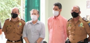 Coronel Hudson Leôncio Teixeira, o comandante-geral da Polícia Militar do Paraná, durante visita ao prefeito de Campo Mourão, Tauillo Tezelli, quando destacou os trabalho do 11º BPM, que tem conseguido reduzir o número de furtos, roubos e homicídios; quinta-feira.
