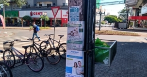 Propagandas em poste no centro de Campo Mourão. Isso é proibido, Como o autor deixa tefefone e endereço, não parece ser difícil a autuação.