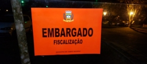 A prefeitura de Campo Mourão, com apoio da Polícia Militar, embargou neste sábado à noite uma casa de eventos na região da usina Mourão. A alegação é que esava havendo um show no local, com aglomeração, contrariando as regras de restrições. A casa diz que era música ao vivo, permitida pelo decreto. O estabelecimento foi multado e o valor poderá chegar a R$ 25 mil. Os donos podem recorrer.