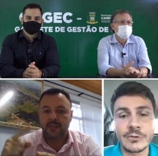 Os presidentes da Comcam, Leandro de Oliveira (Araruna), e do Cis-Comcam, Rafael Bolacha (Moreira Sales), o prefeito Tauillo Tezelli (Campo Mourão) e o secretário da Saúde Sérgio Henrique dos Santos, participarm de live em conjunta nesta sexta-feira.
