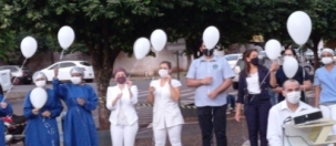 Desde o início da pandemia, 107 pessoas morreram de covid na Santa Casa de Goioerê. Nesta sexta-feira teve ato em homenagem a elas. Foram soltos balões brancos com os nomes de todas as vítimas. Eram moradores de 31 cidades do Estado, sendo 18 municípios da região, incluindo Campo Mourão.