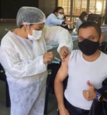 A Secretaria de Saúde de Campo Mourão iniciou nesta terça-feira a vacinação de pessoas com comorbidades a partir de 30 anos. E olha quem apareceu por lá: o "recepcionista oficial" Magnum Alves. Ele andava meio "sumidão" por conta da pandemia, já que não existem mais eventos com famosos para ele fazer a recepção, mas reapareceu com a vacina. E deixa a vida volta ao "velho normal" para ver uma coisa, deixa...