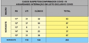 A fila por vagas em hospitais para pacientes com covid-19 continua na região. Na manhã desta quarta-feira havia 63 pessoas à espera nos 25 municípios da 11.a Regional de Saúde. Trinta e uma precisavam de UTI e 32 de atendimento clínico. Em toda a Macronoroeste a fila era de 263 pacientes, com 119 necessitanto de unidade de terapia intensiva.