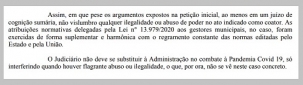 A juíza Gabriela Borri Aranda frisou que não viu ilegalidade no decreto e indeferiu o pedido.