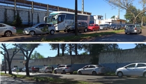 Fila de carros com torcedores chegando ao estádio Roberto Brzezinski para acompanhar mais um jogão do Sport Campo Mourão? Claro que não. É só a fila pra vacinação drive thu, na manhã desta terça-feira.