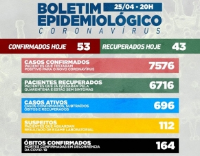 Mais 53 casos de covid-19 foram confirmados neste domingo em Campo Mourão. As recuperações foram 43. O número de vírus ativo subiu para 696, mas os casos suspeitos caíram de 138 para 112. A taxa de ocupação na ala covid está em 84% na enfermaria, 79% na UTI SUS e 60% na UTI convênios.
